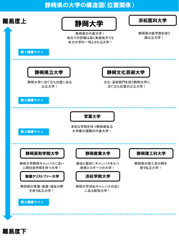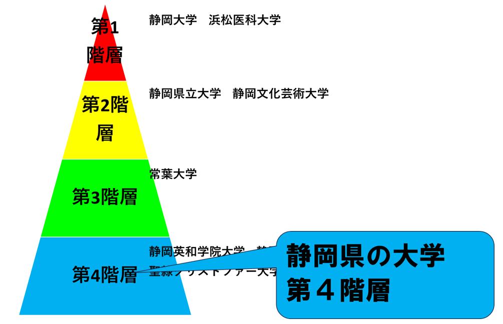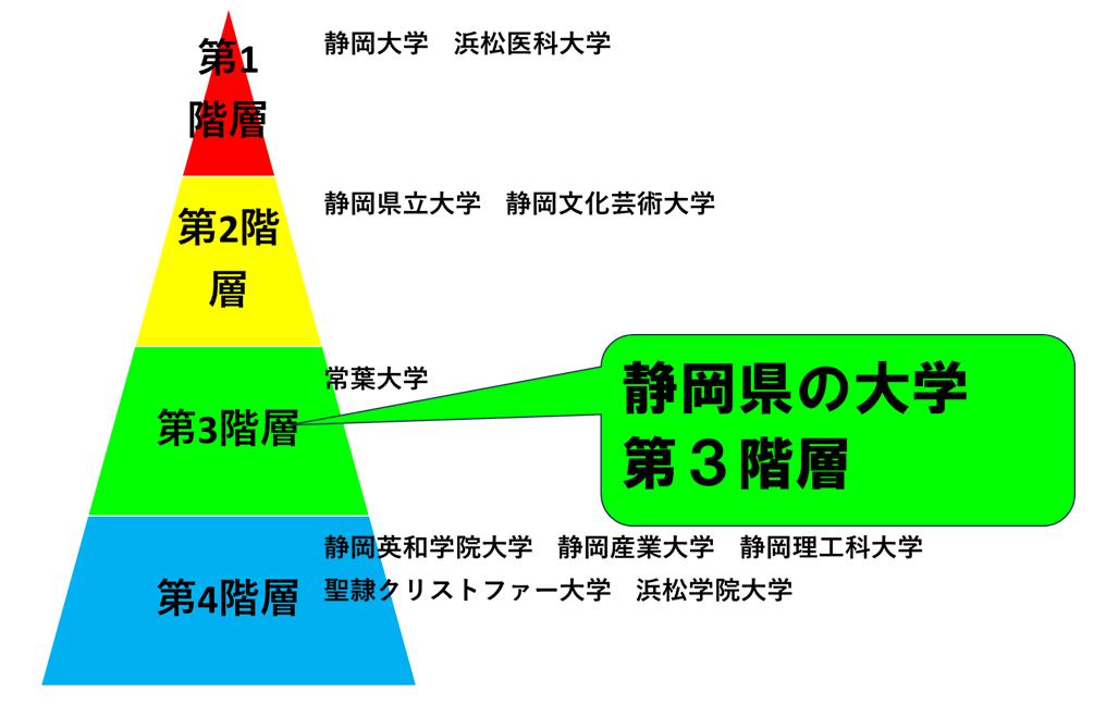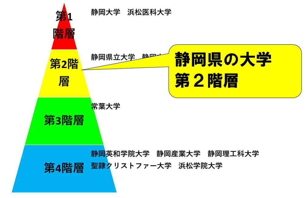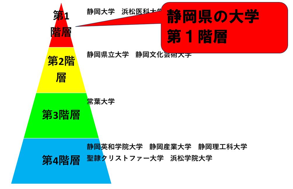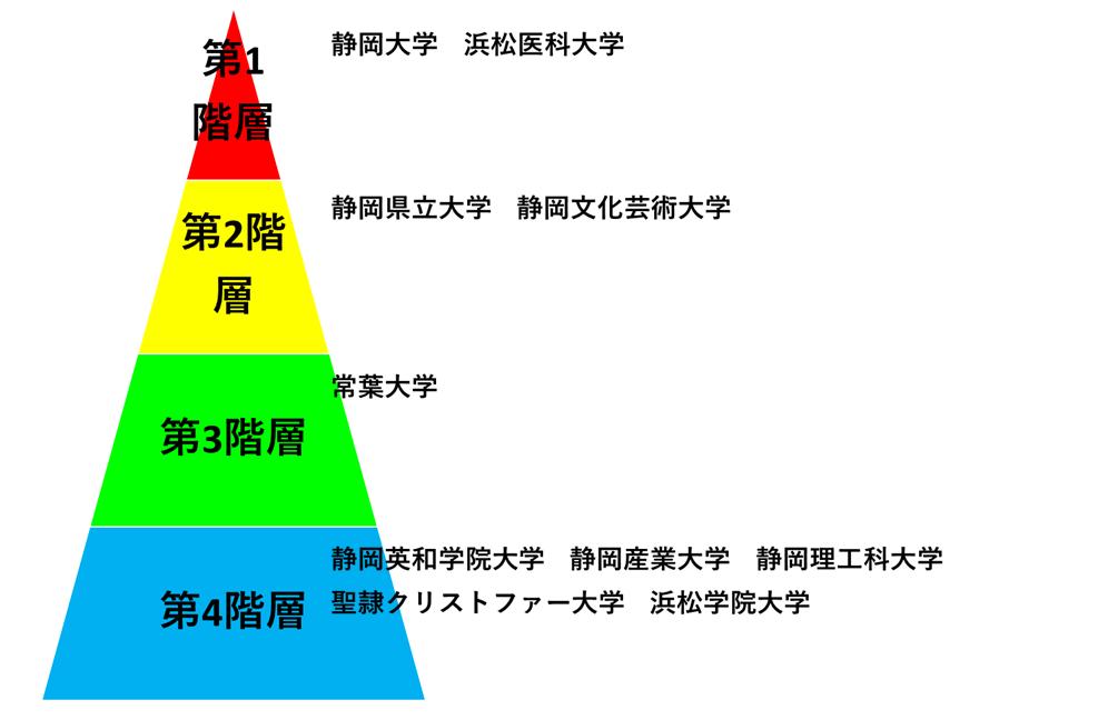 第1階層の大学は静岡県の頂点クラスの大学と医学部の大学なのでどちらもかなり評価が高いレベルの