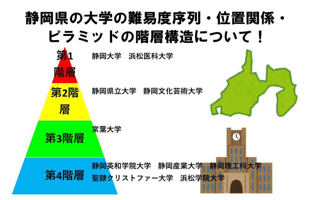 静岡県の大学の難易度序列と位置関係・ピラミッドの階層構造について述べていきます。