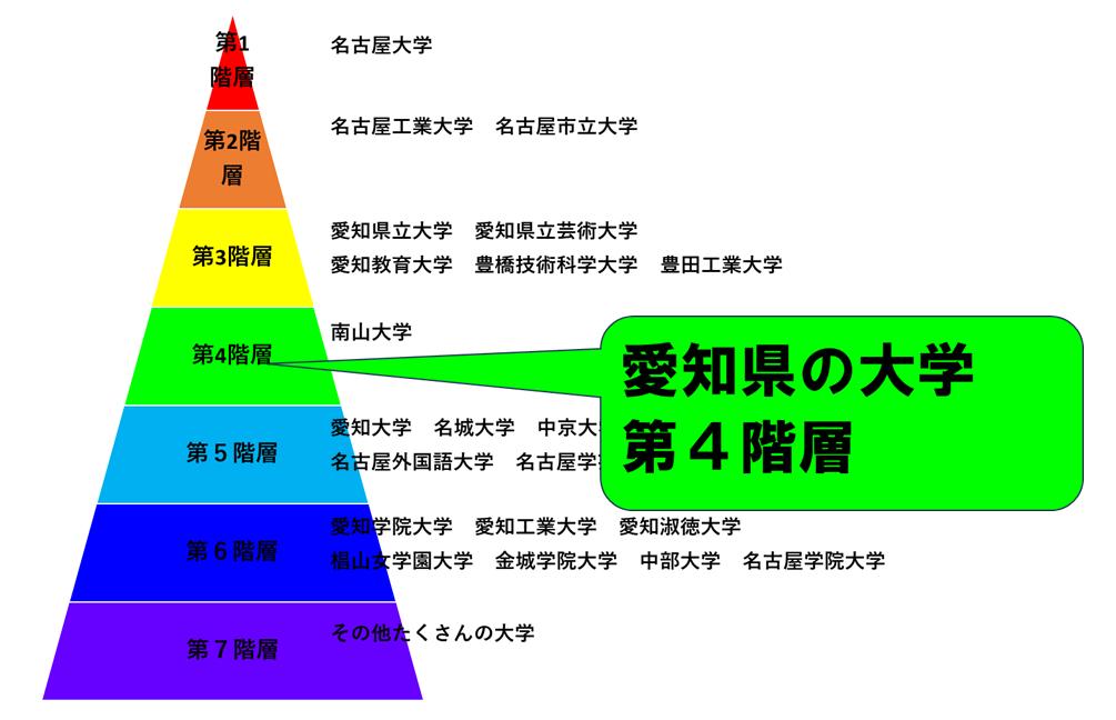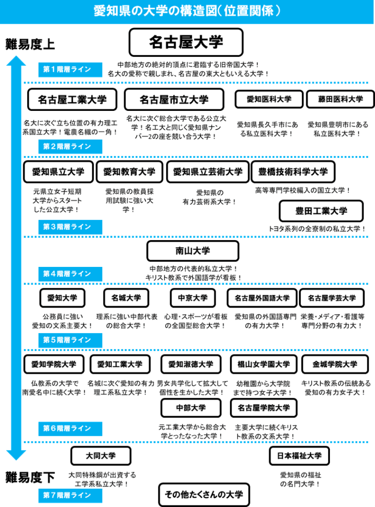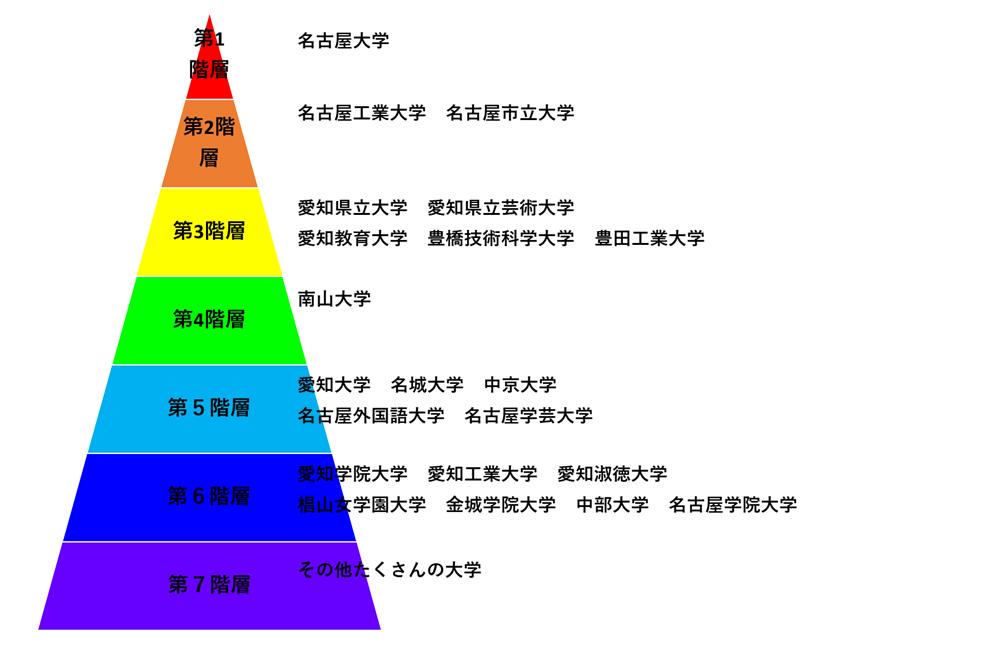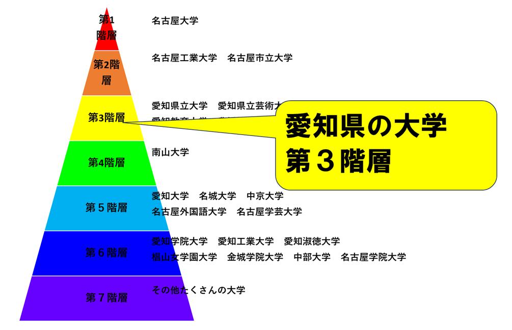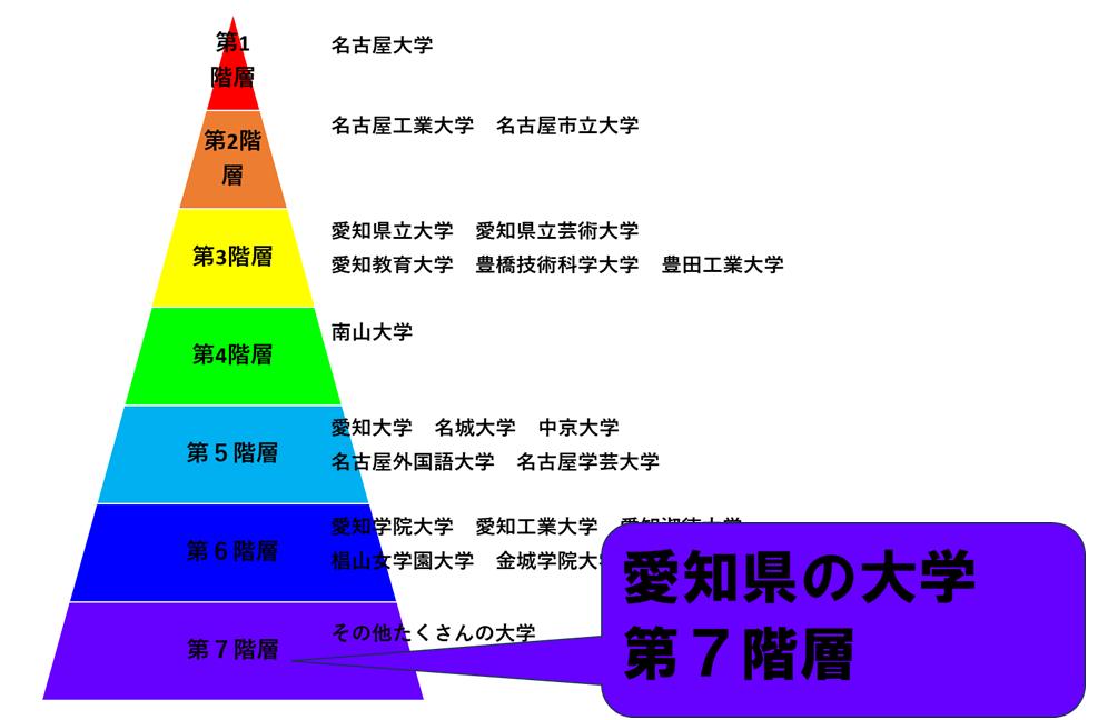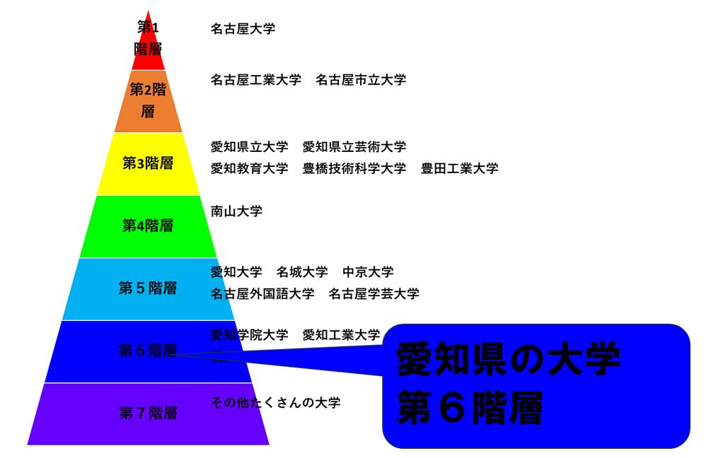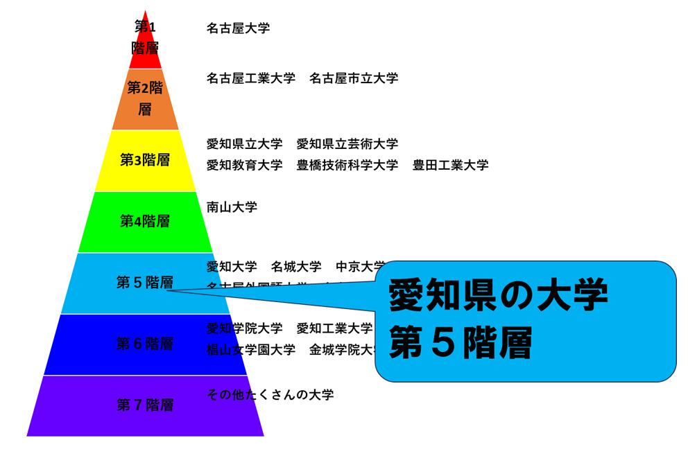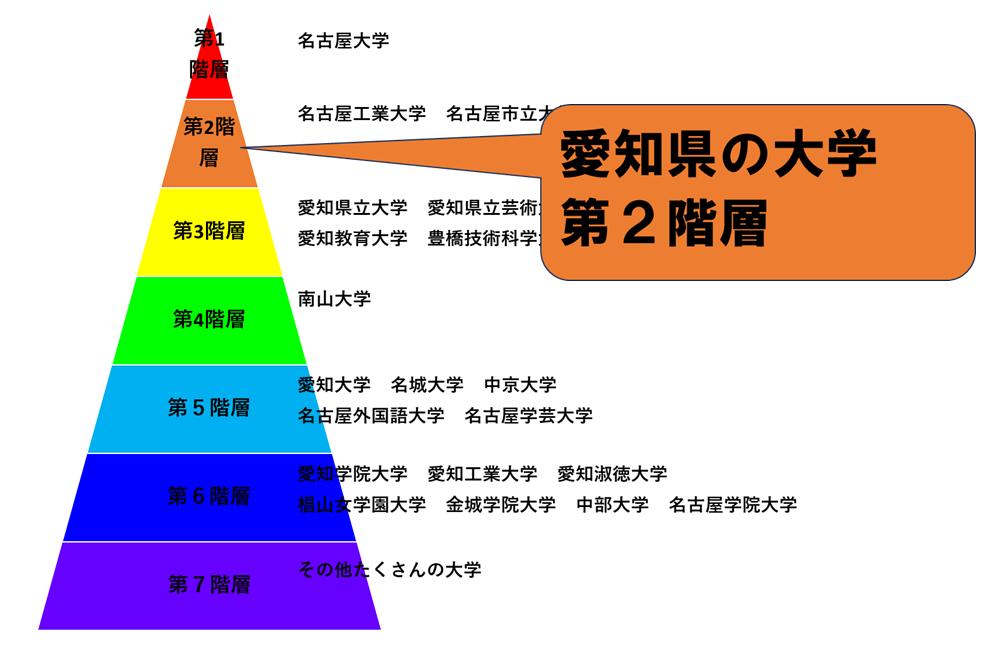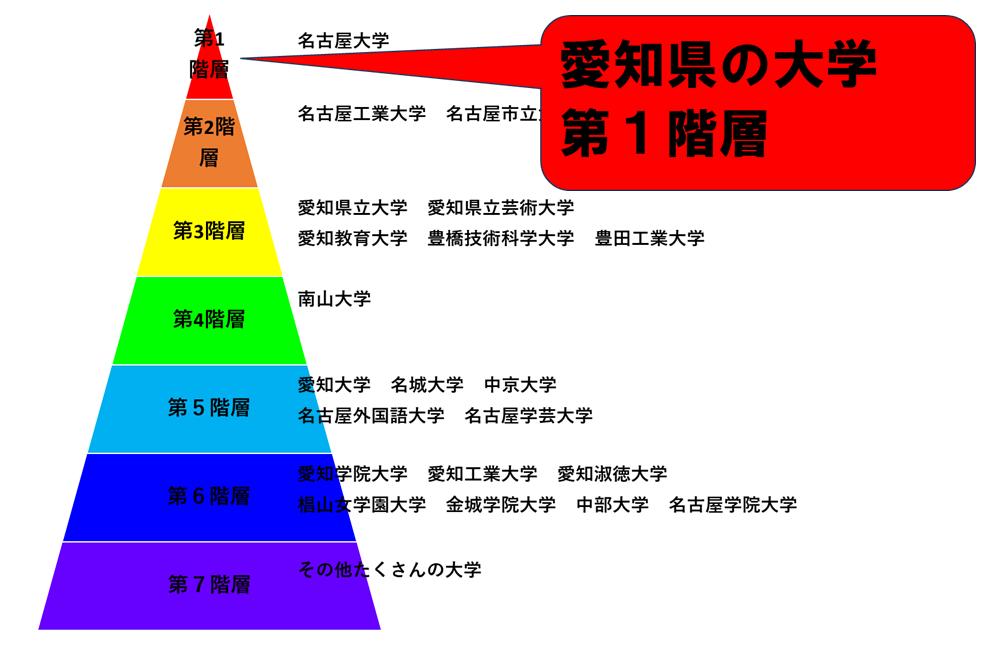 愛知県の大学は、第1階層から第7階層まであります。