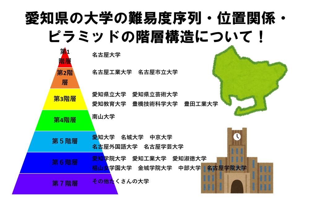 愛知県の大学の難易度序列と位置関係・ピラミッドの階層構造について述べていきます。