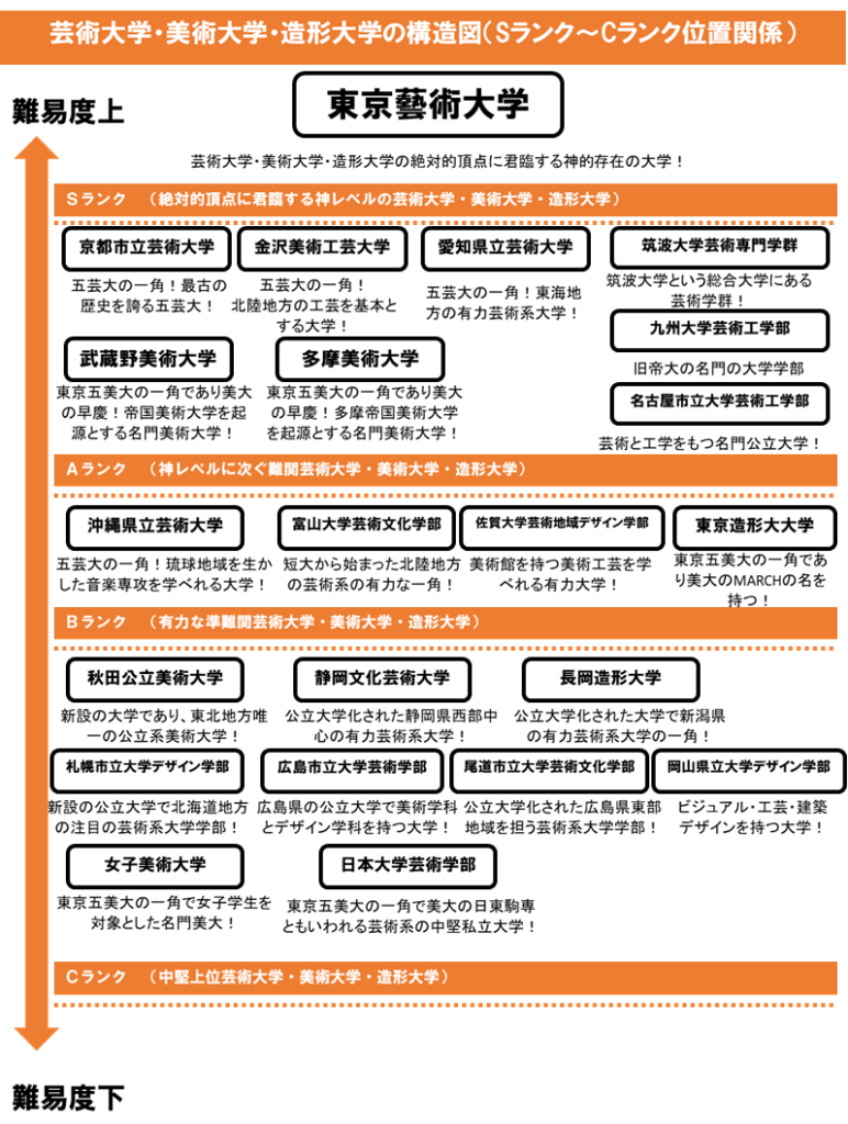 □芸術大学・美術大学・造形大学の難易度序列をSランク~Fランクまでランク付けして評価!