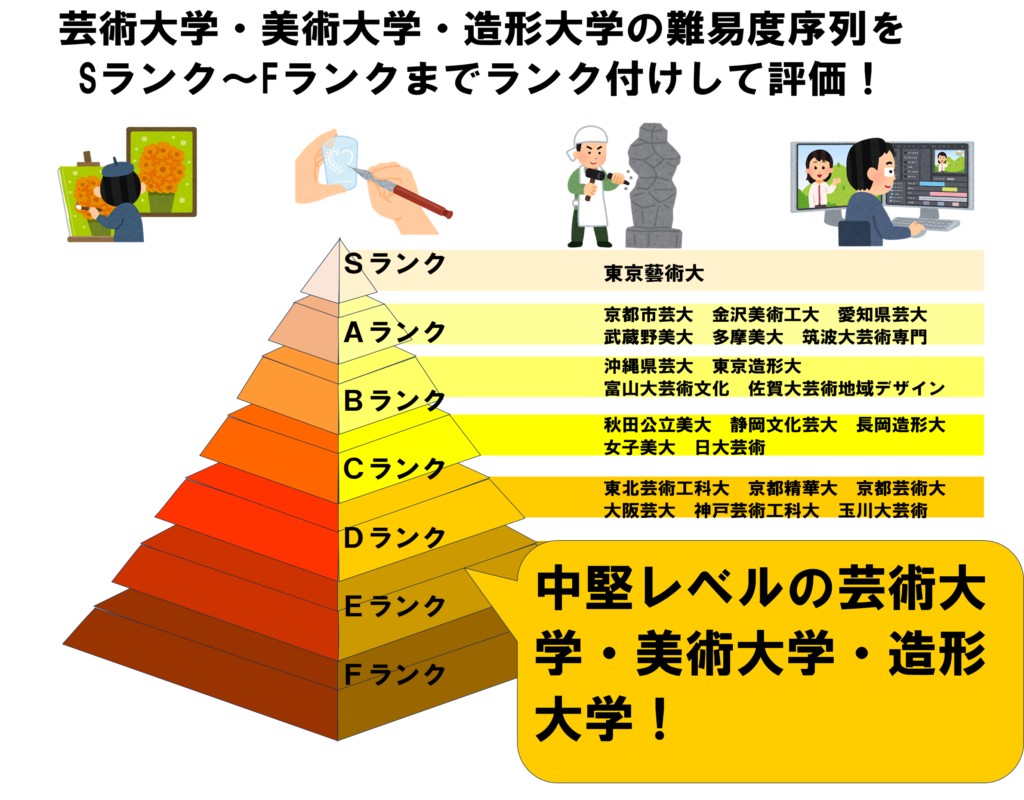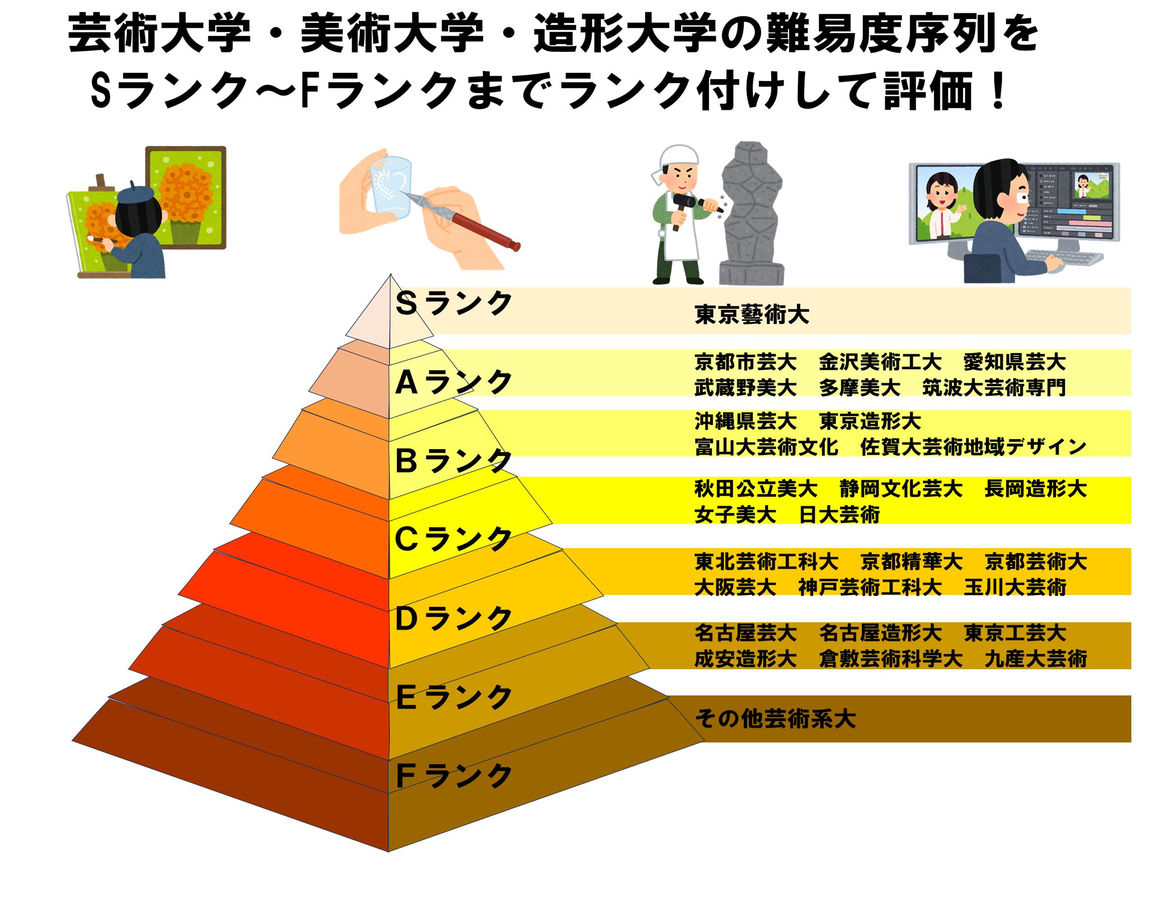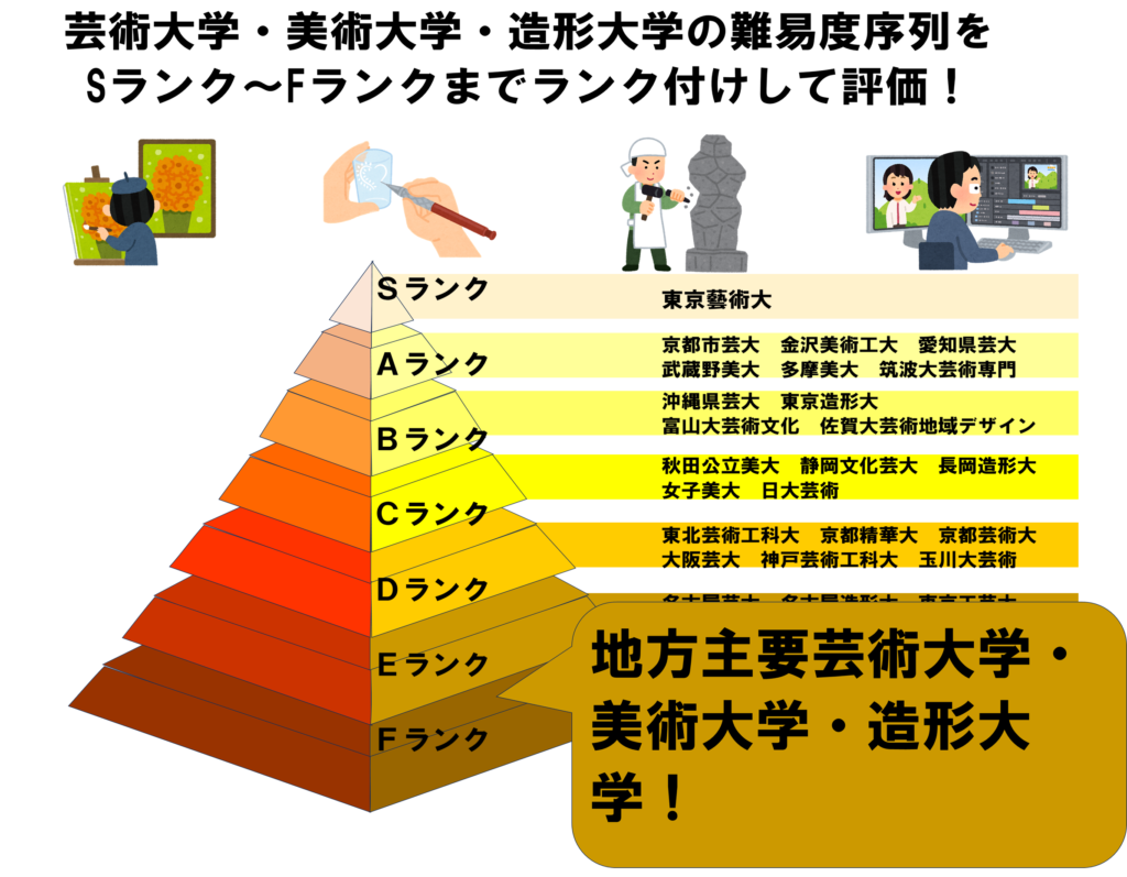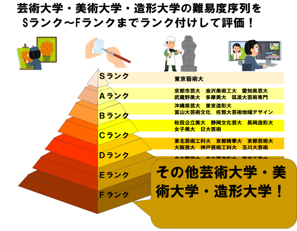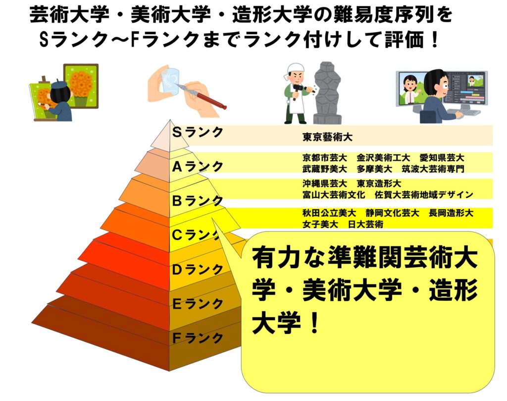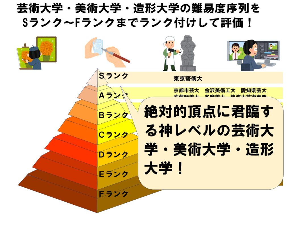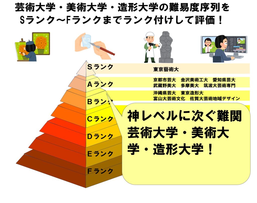今回は芸術大学・美術大学・造形大学の難易度序列をSランク~Fランクまでランク付けして評価という記事を述べていきます。