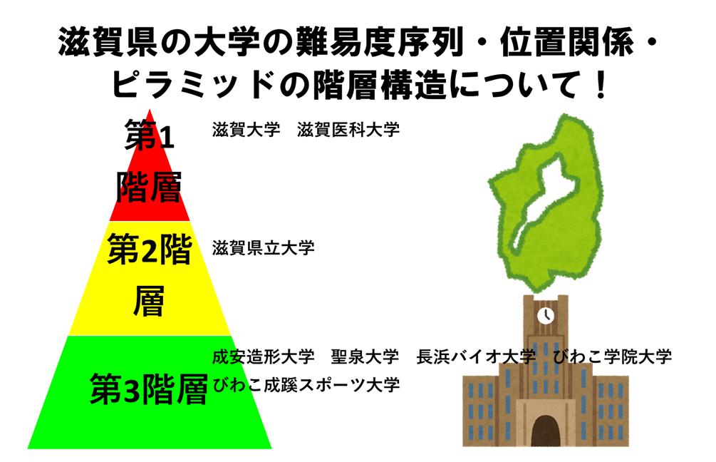 滋賀県の大学の難易度序列と位置関係・ピラミッドの階層構造について述べていきます。
