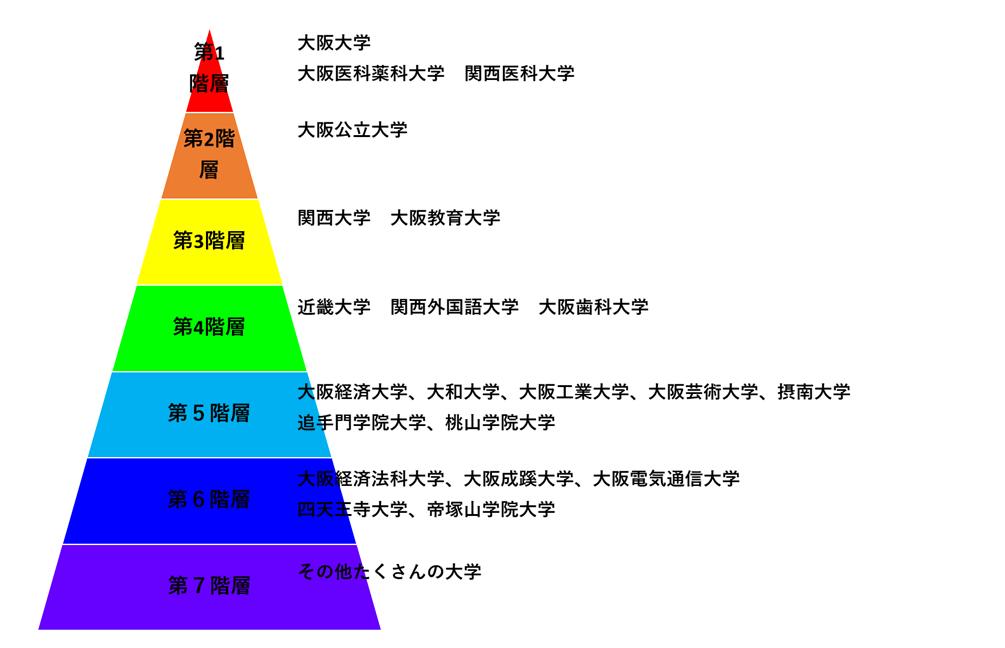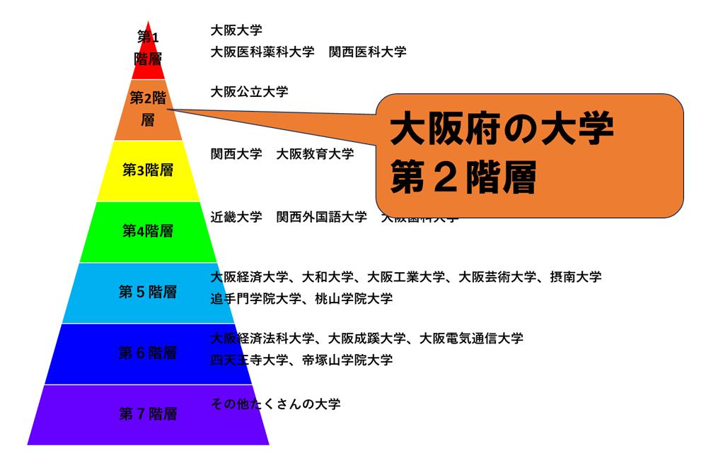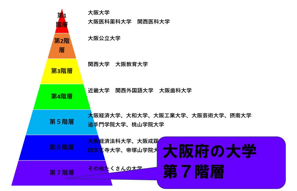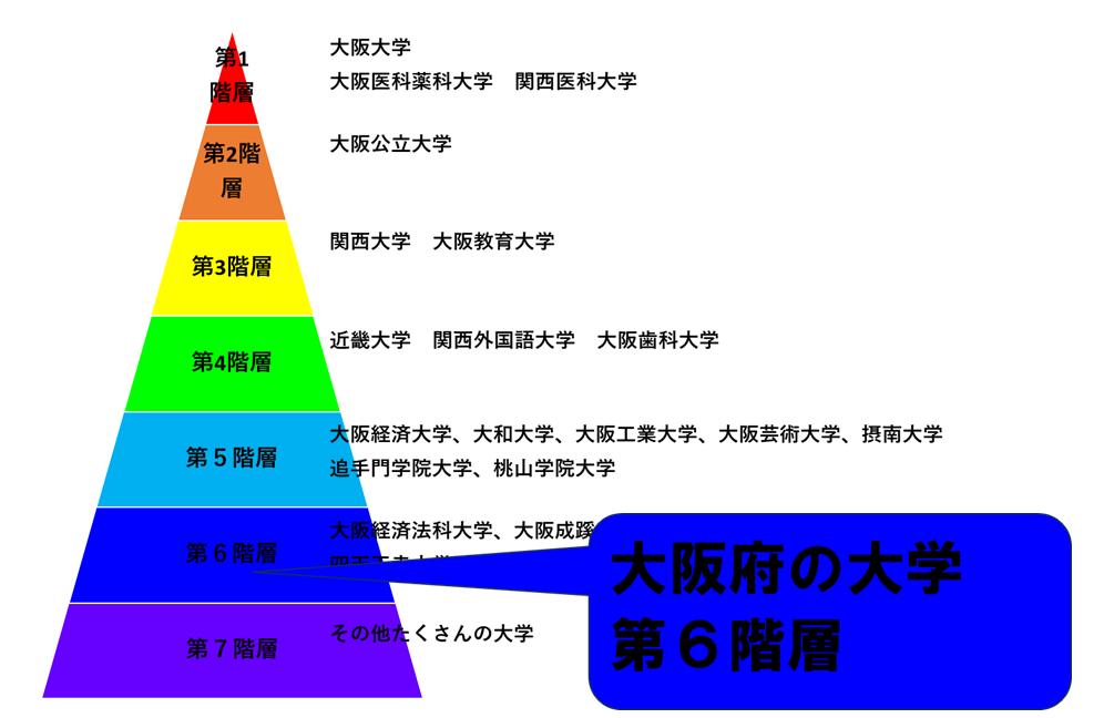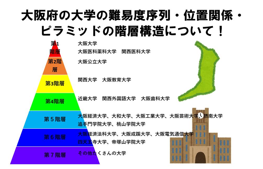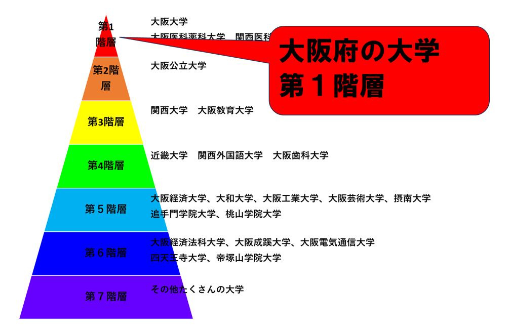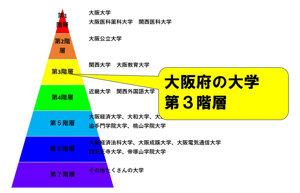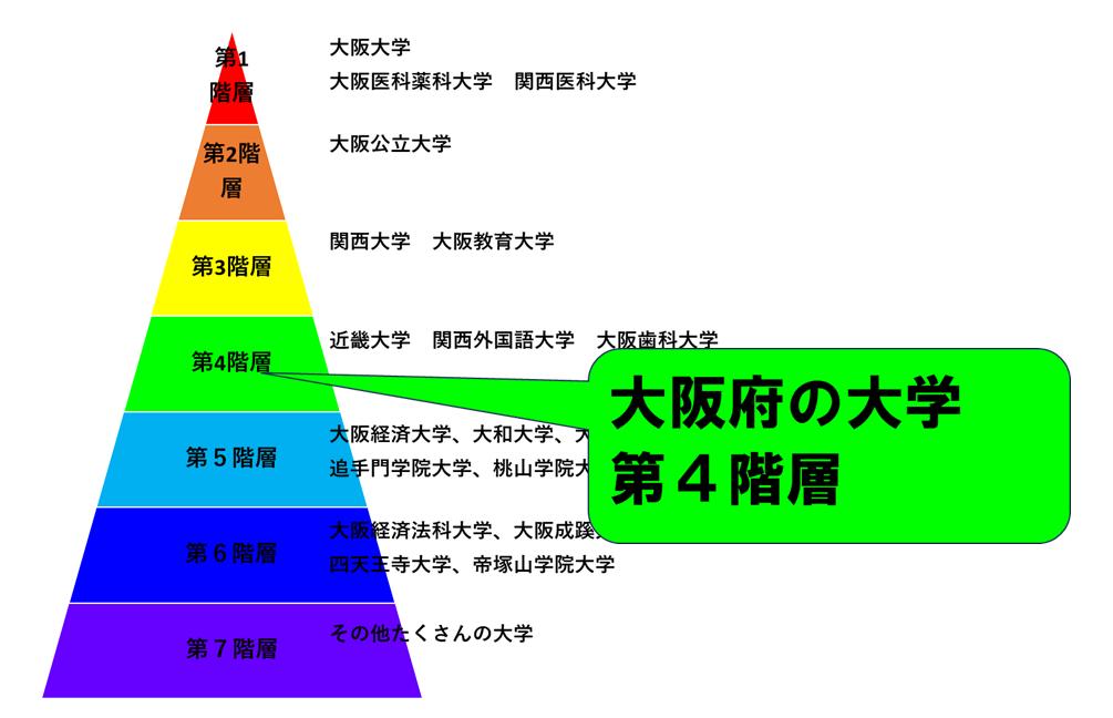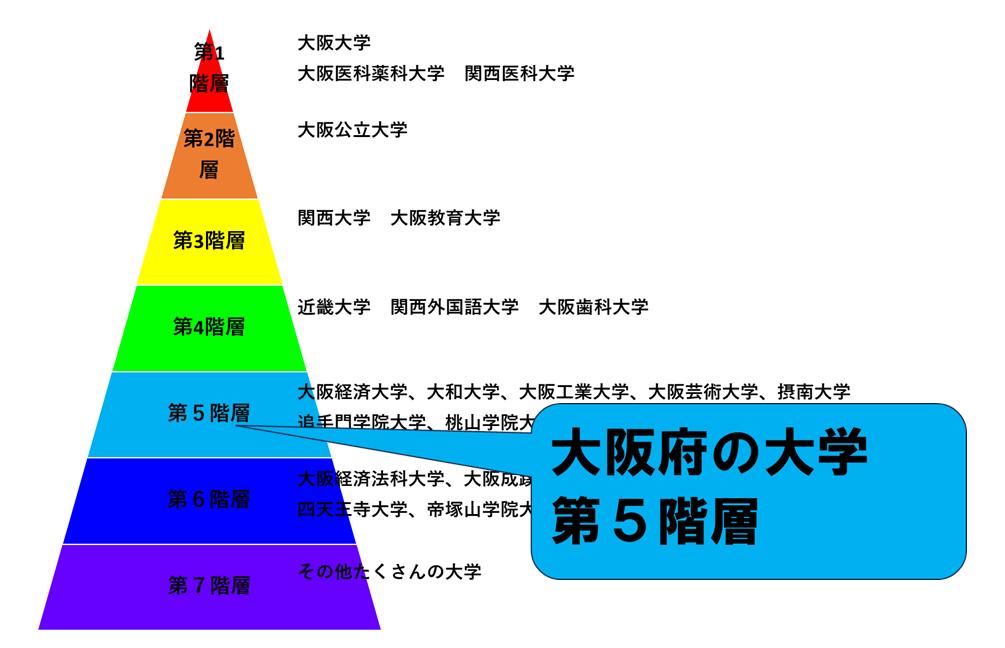 大阪府の大学の難易度序列と位置関係・ピラミッドの階層構造について述べていきます。